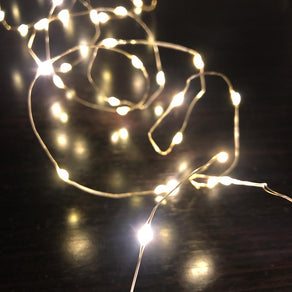 Add a warm glow to your table with these dainty String Lights by Talking Tables. These small LED lights are perfect for decorating your dinner table, mantlepiece, banister or in a jar as a table centrepiece! Each pack contains a 3m (10ft) string of white LED lights on a gold wire. Product info: Length 3m, battery type 3 x AA, batteries not included.