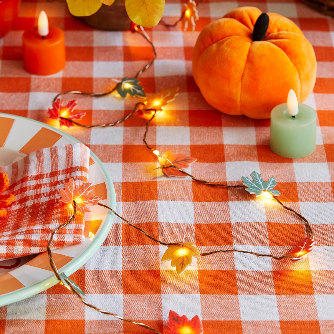 How to merchandise Autumn Hues Felt Leaf String Lights: