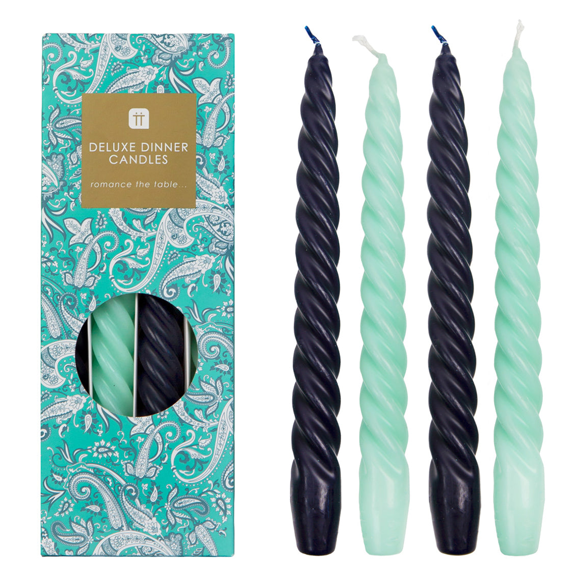 Pack Size: Contains 4 candlesticks - 2x navy blue and 2x mint green