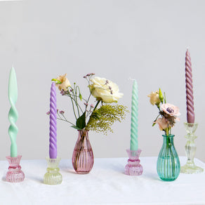 Simple yet sophisticated, these blue spiral candles come in two beautiful cool tones of navy blue and mint green. A striking addition to the candle, gifting or home decor sections of your store, each candlestick has been carefully crafted into a twisted shape and has a long burn time of up to 6 hours. A favourite of customers old and young, use the contrasting candles next to each other for a dramatic table setting or individually for a more calming and subtle touch. Showcase within a Boho or Mediterranean display in your spring and summer ranges or add into your core collections of candles to sell all year round.