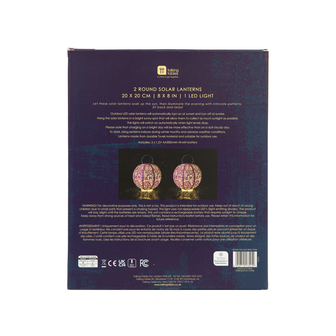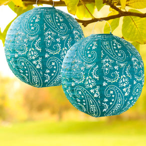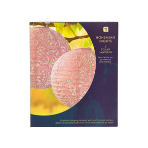 In gorgeous shades of pink and blue, these hanging solar lanterns makes a stylish addition to your existing range of garden décor, lighting or gifts. Containing 3 different colour variation of our boho outdoor lanterns, this starter set is perfect to trial in your store to work out your customers favourites before committing to a larger quantity. With intricate paisley print designs, these garden lanterns make a lovely hanging decoration in the daytime but truly shine at night when they cast shadow patterns all around.