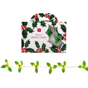 Add a twinkle to your Christmas table with Holly String Lights by Talking Tables. These holly shaped LED lights are the perfect decoration for adding a pop of colour and festive touch to your Christmas table, mantlepiece, banister or in a jar as a table centrepiece! Each pack contains a 3m (10ft) string of mini holly LED lights. Product info: Length 3m, battery type 3 x AA, batteries not included.