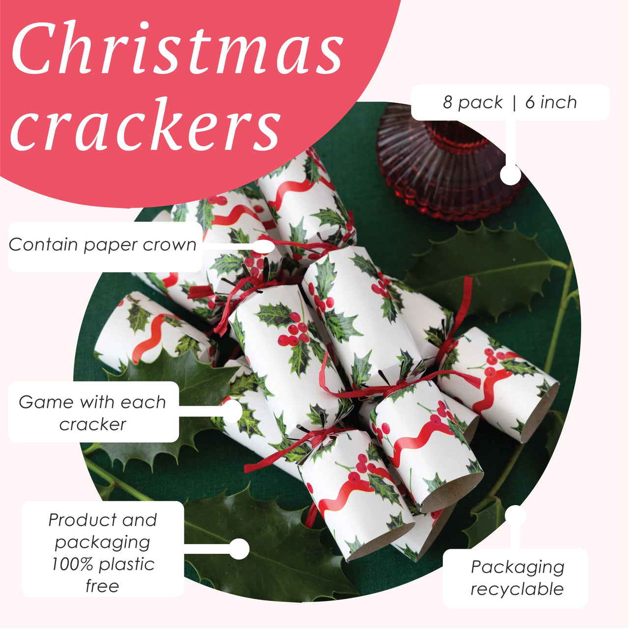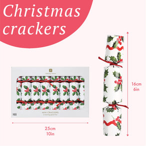 About Botanical Holly White Mini Christmas Crackers - 8 Pack: