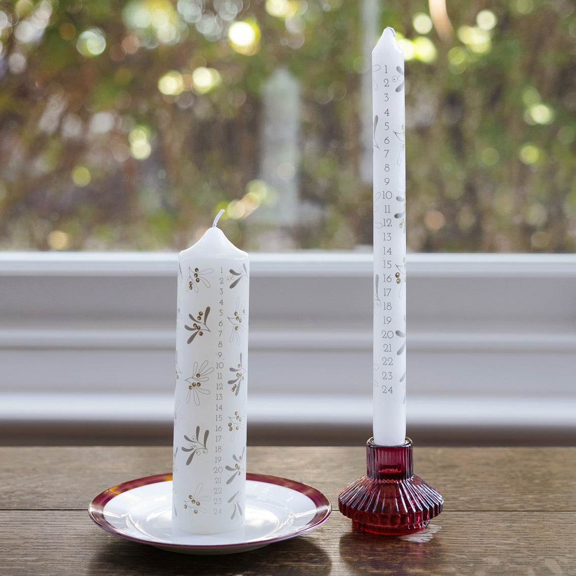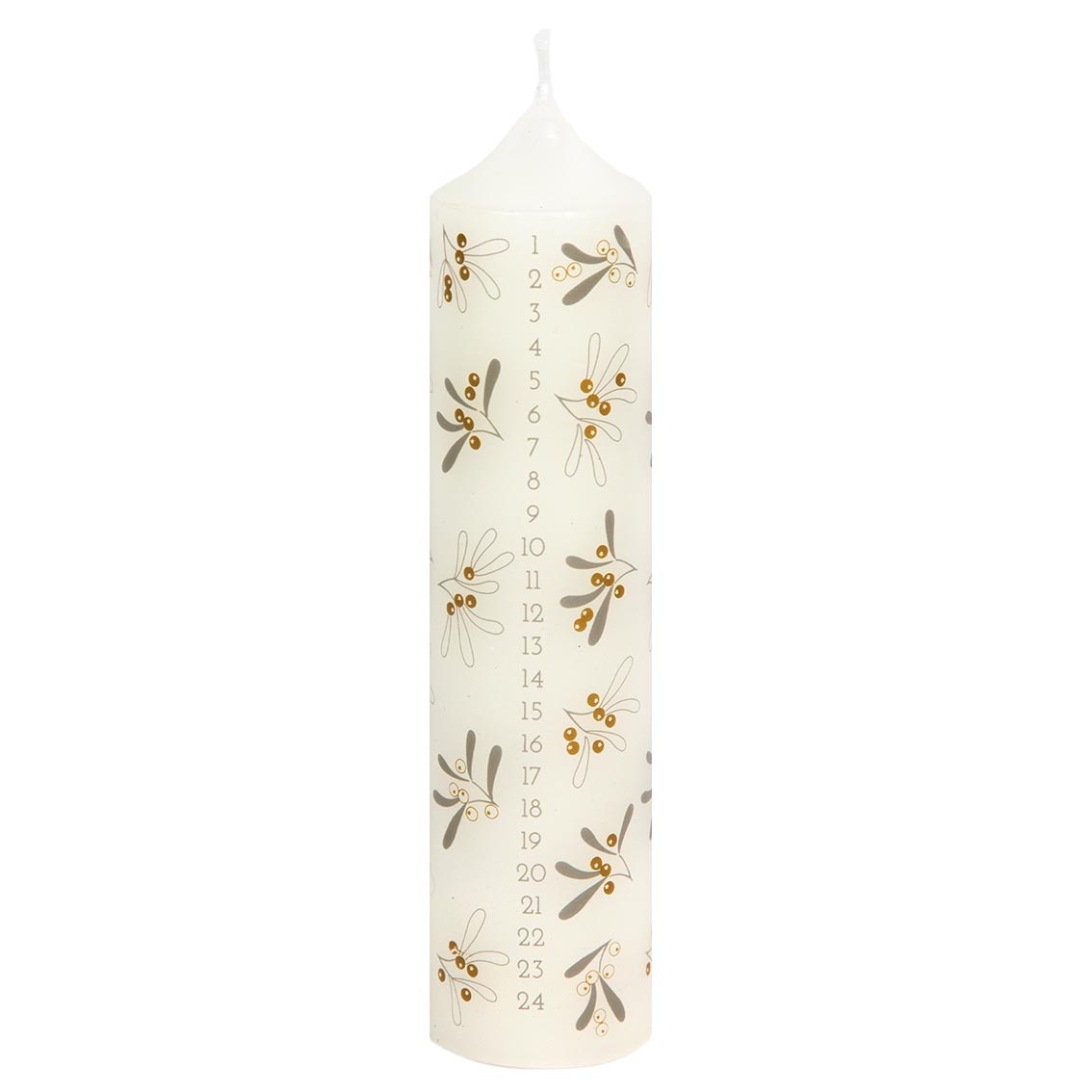 Bring a little German tradition into your store during the Christmas period with this beautiful mistletoe pillar candle. A pretty and purposeful table decoration, this advent calendar candle has the dates 1st-24th December printed down the centre of the candle surrounded my mistletoe leaves and berries. Place in centre of a Christmas wreath as a table centrepiece or on a mantelpiece ready to light each day of advent in the lead up to Christmas Day.