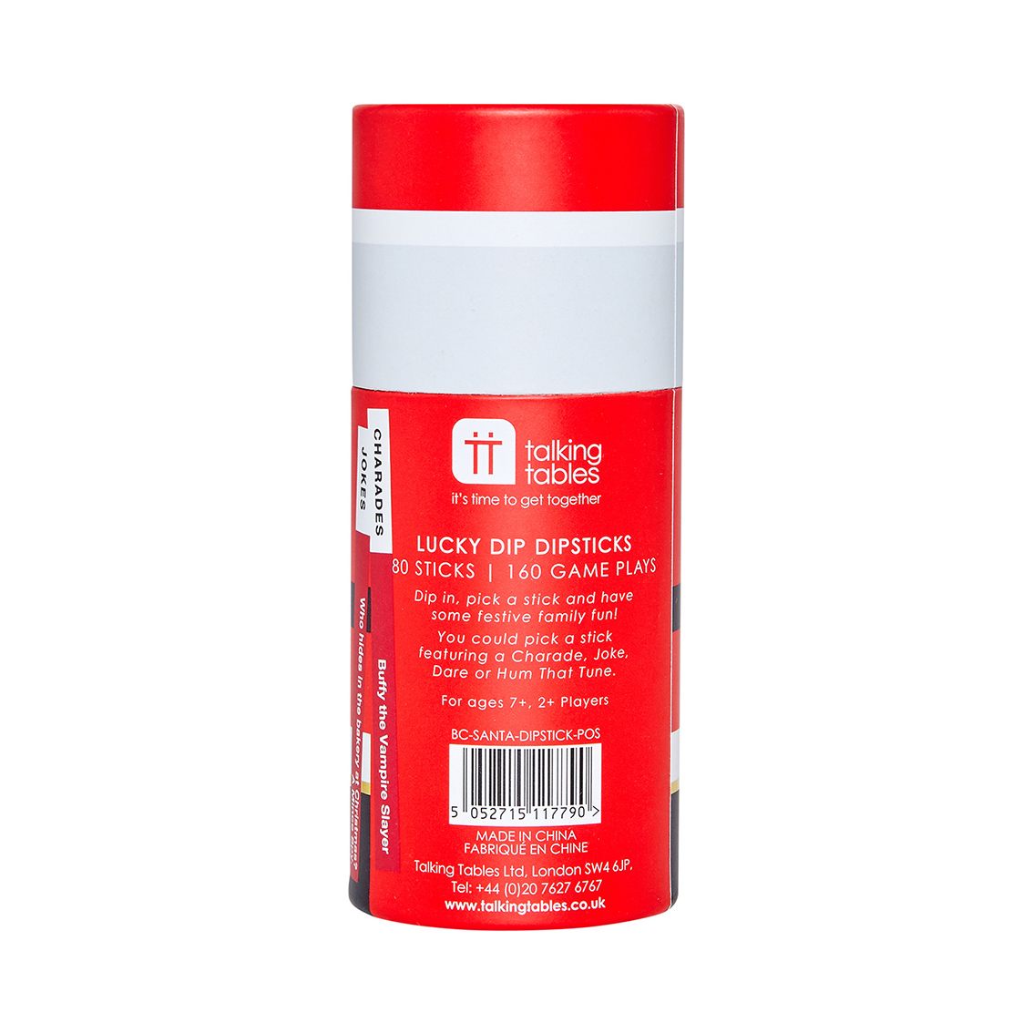 Dip in, pick a stick and have some family festive fun! You could pick a stick featuring a Charade, Joke, Dare or Hum That Tune. Ideal for celebrating with the loved ones in your life during the festive season whether that's Christmas Day, Boxing Day or even Twixmas. 80 sticks per dipstick, 160 game plays. Each POS unit contains 12 dipsticks. Recommended for age 7+ Size: 13cm x 5.5cm / 5" x 2"