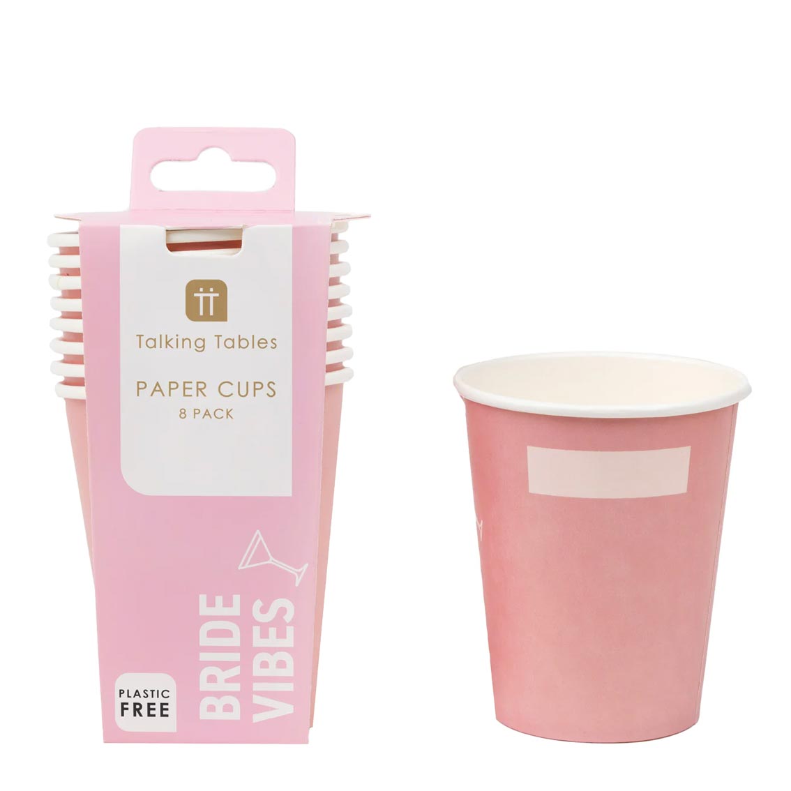 About these Bride Vibes Pink Paper Cups - 8 Pack: