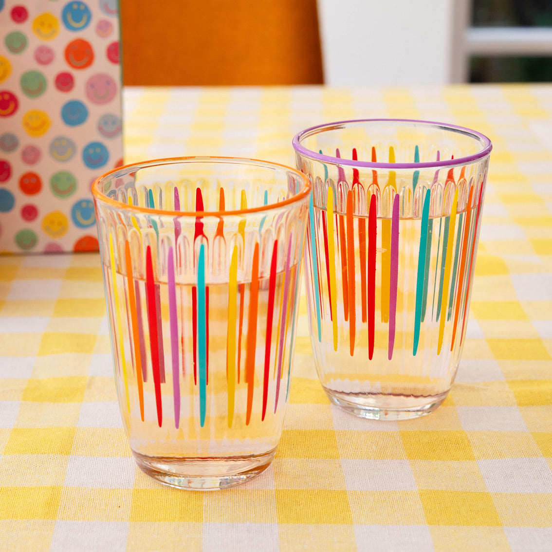 How to merchandise Bright Multi-Coloured Striped Tall Glass Tumblers: