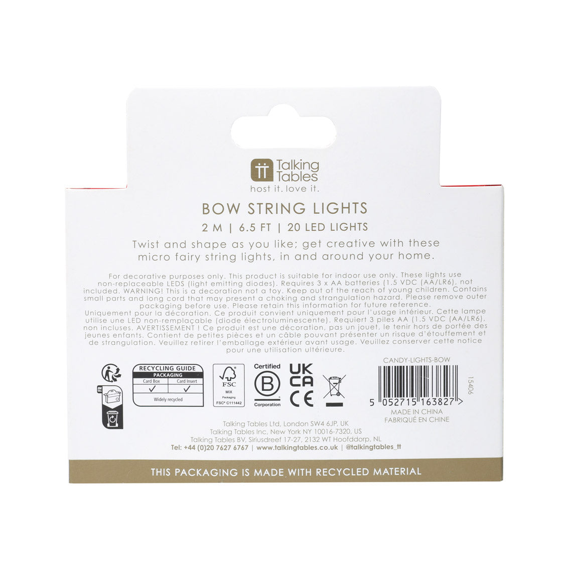 Light up your in store table with festive flair using the Candy Christmas Bow String Lights. Featuring soft bows with warm LED lighting, this 1.5m string is ideal for decorating tables, windows or shelves with elegance.