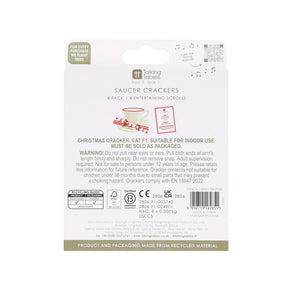 Brighten your table with these Candy Christmas Saucer Crackers. Designed to sit neatly on saucers or side plates, each cracker is filled with an entertaining scroll for Christmas table giggles.