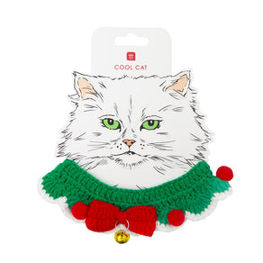 For the pet parents shopping in your store, this Christmas cat collar will ensure the most important family member isn't left out of the festive celebrations. Place the crochet collar around the neck of a small to medium sized cat and tie a bow, ensuring a comfortable fit. Crocheted from red and green yarn with a Christmas bow tie and bell, this cat accessory is perfect for family Christmas cards or for wearing throughout December.