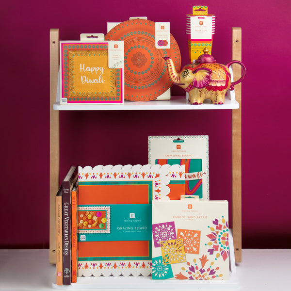 The intricate floor art created with coloured sand is called rangoli is an im-portant part of Diwali celebrations and is believed to bring good luck to households. This traditional Diwali Rangoli Sand Stencil Kit includes seven brightly coloured sands to create patterns with the four stencils provided.