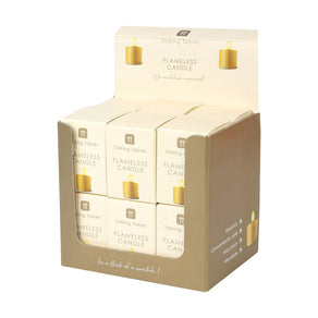 Create a warm and safe glow with this Flameless LED Tealight Candle in gold. With a realistic flicker and elegant metallic base, it's perfect for home décor, dinner parties or festive displays—especially where open flames aren't suitable. Supplied in a convenient POS unit for quick, seasonal merchandising.