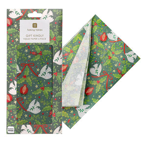 On trend premium design meets sustainability in our new Folklore tissue paper. The Folklore collection is inspired by Eastern fairytales and features a hand painted design of doves, holly and pomegranates. The collection includes both paper tableware and gift wrapping accessories, perfect for customers looking for a coordinated theme for all their festive celebrations. The tissue also sits within our new Gift Kindly selection of gift wrapping, and is made of tissue from FSC certified forests, is recyclable and plastic free.