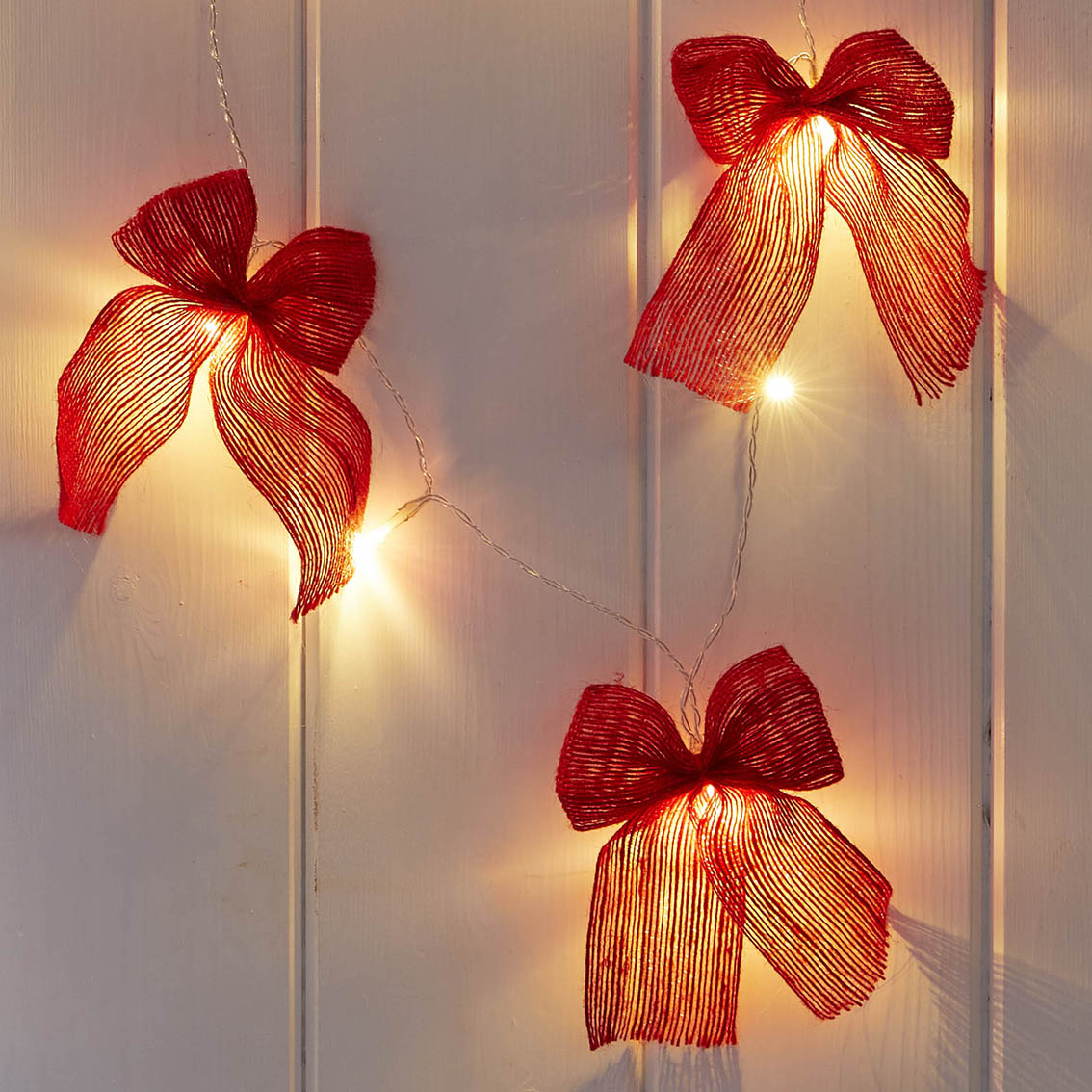 Add the Christmas wow factor to your displays and customers’ tables this festive season with our on-trend fabric bow string lights. Influenced by folk art, the decorative bows give a warm and cosy feel, both in colour and design. They also look perfect styled as part of a Valentines setting. The fabric bows come with 10 LED lights and are 2.6m in length.