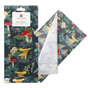 Our popular Midnight Forest Christmas tissue paper has been updated and improved with its on trend forest plants and fungi design now carrying over onto the packaging. It has also been branded to sit within our new Gift Kindly collection, which provides customers with a design-led and sustainable choice for gift presentation. The pack includes four sheets of FSC certified tissue that measure 70cm by 50cm.
