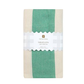 Add a fresh update to your table linen collection with this Green Stripe Cotton XL Tablecloth. Made from 100% cotton and woven in Turkey, this tablecloth is machine washable and designed for everyday use or for seasonal occasions. The bold green stripe adds a pop of colour to any setting, complementing Talking Tables’ Bon Herb and Easter collections perfectly. Extra large in size, it’s ideal for family gatherings or larger table settings.