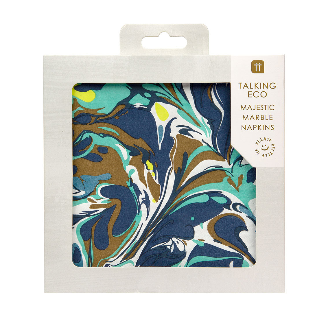 We our mindful of our impact on the environment and have made some clever design changes to our napkins to be more eco-friendly. These marble napkins are recyclable and come in plastic free packaging. Instead, we've included one extra napkin at the front of pack to throw away after keeping the rest clean.