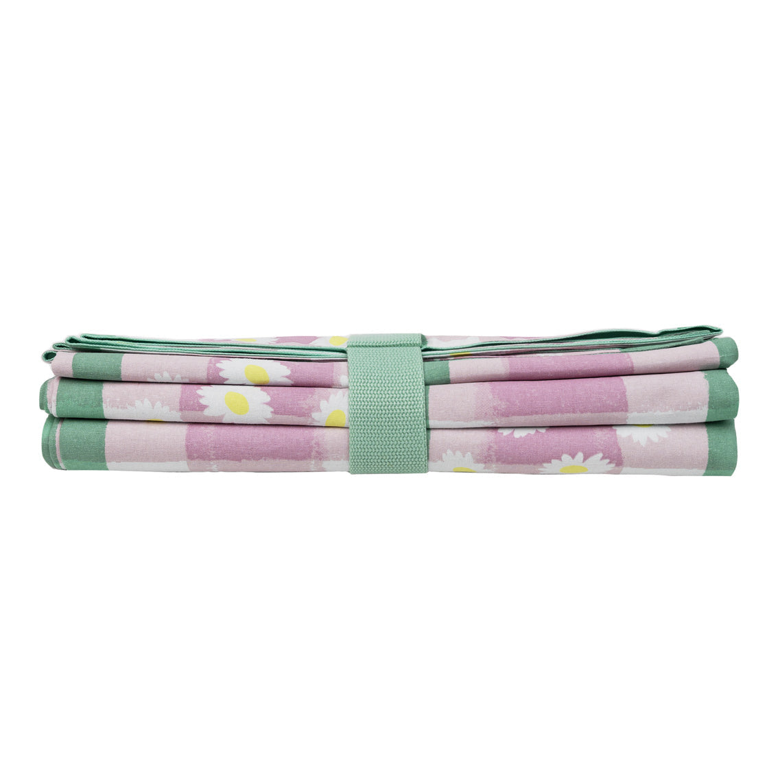 In a delightful daisy print, set against a lilac and green gingham background, this Mellow Picnic Blanket will brighten up your shelves and attract the interest of customers. Made from 100% cotton with a waterproof polyester lining, you needn’t worry about tea flask spillages, plus it’s easy to wipe down after use. Features a fabric band with a Velcro closure, making it convenient to fold and carry while traveling.
