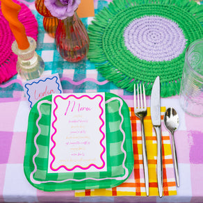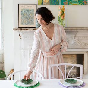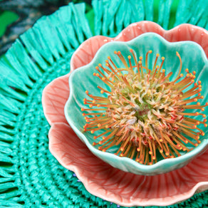 No warm weather gathering is complete without our raffia place mats in vibrant shades of lilac and green. Handmade in Vietnam using sustainably sourced raffia, the fringed mats can be used as statement centrepieces, individual place settings or slipped under hot serving dishes.