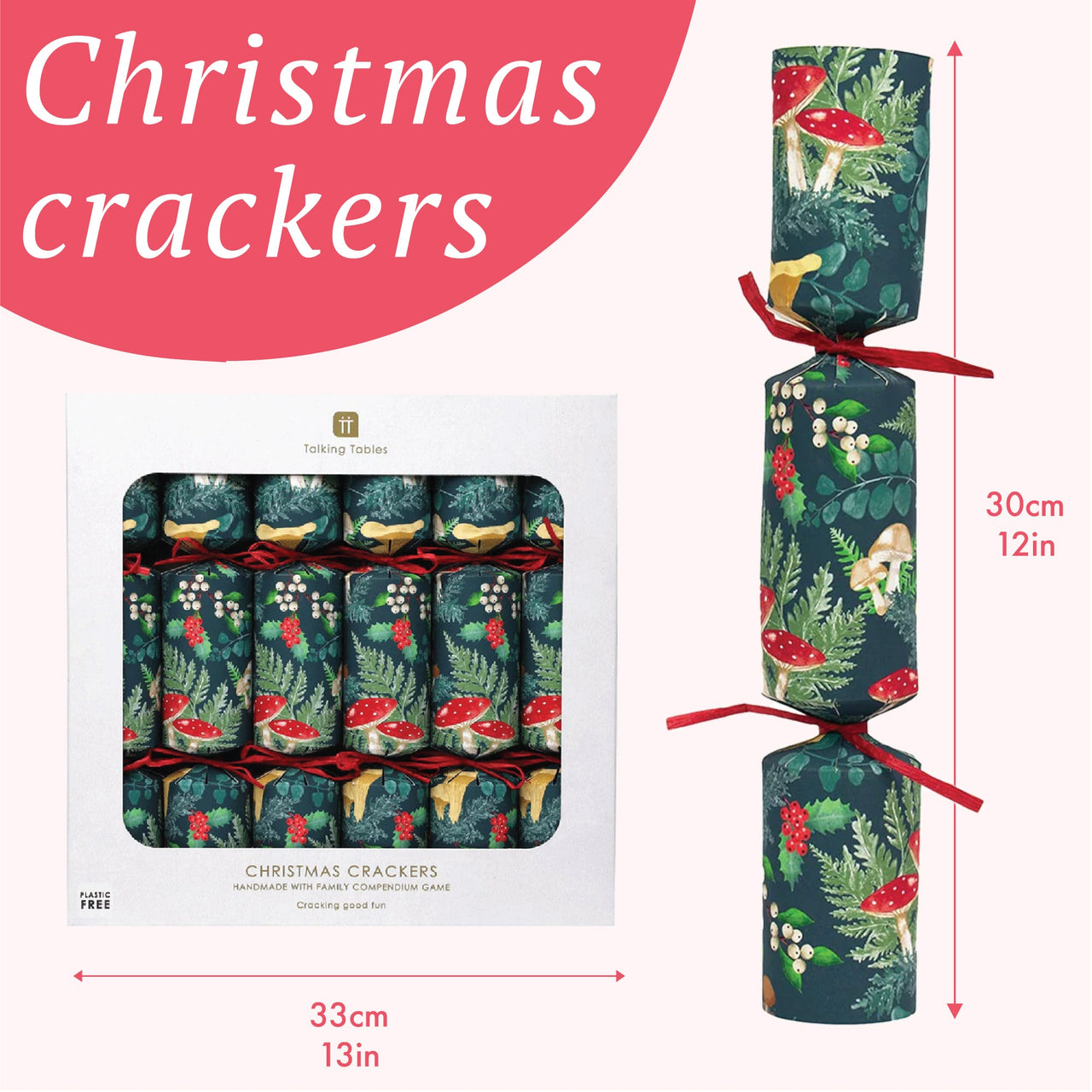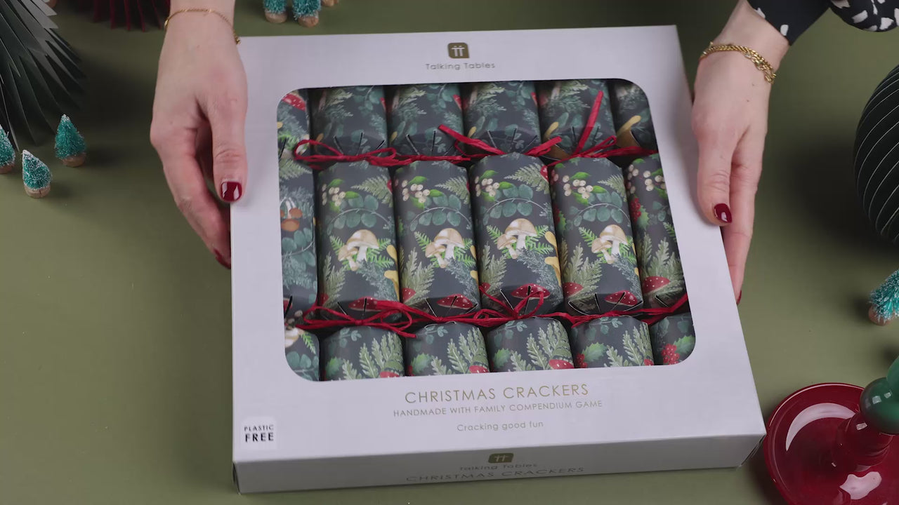 We suggest grouping these Forest Christmas crackers by similar themes or designs. Try displaying with the matching Midnight Forest napkins, mushroom candles and candle holders to show an on-trend Christmas option for your customers.