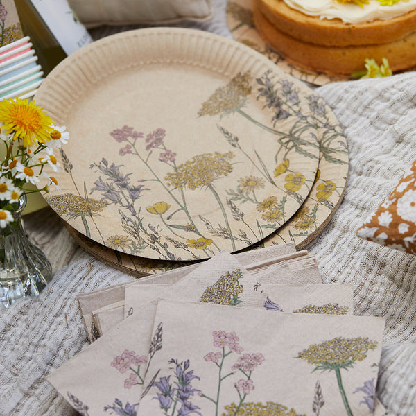 Introducing our first ever napkins crafted from recycled paper. Part of our most sustainable collection ever, these Natural Meadow Floral Paper Napkins feature a delicate and beautifully detailed print of wildflowers, each with a hint of colour, including earthy shades of lilac, yellow, green, and blue. The Natural Meadow range would elevate a children's fairy or woodland themed party, and be truly enjoyed by horticulturists and flower lovers alike.