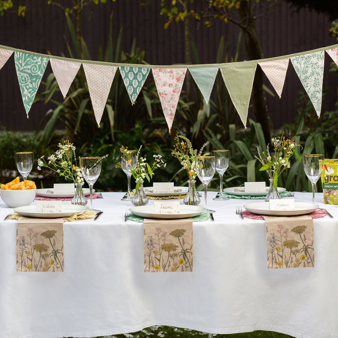With the wildflowers design, the Natural Meadow collection would sit nicely in garden centres, as well as homeware stores, gift shops and party stores. Display alongside co-ordinating napkins or with the rest of our Natural Meadow collection, including place cards, raffia placemats, bunting, rope string lights, and sage green bunny honeycomb.