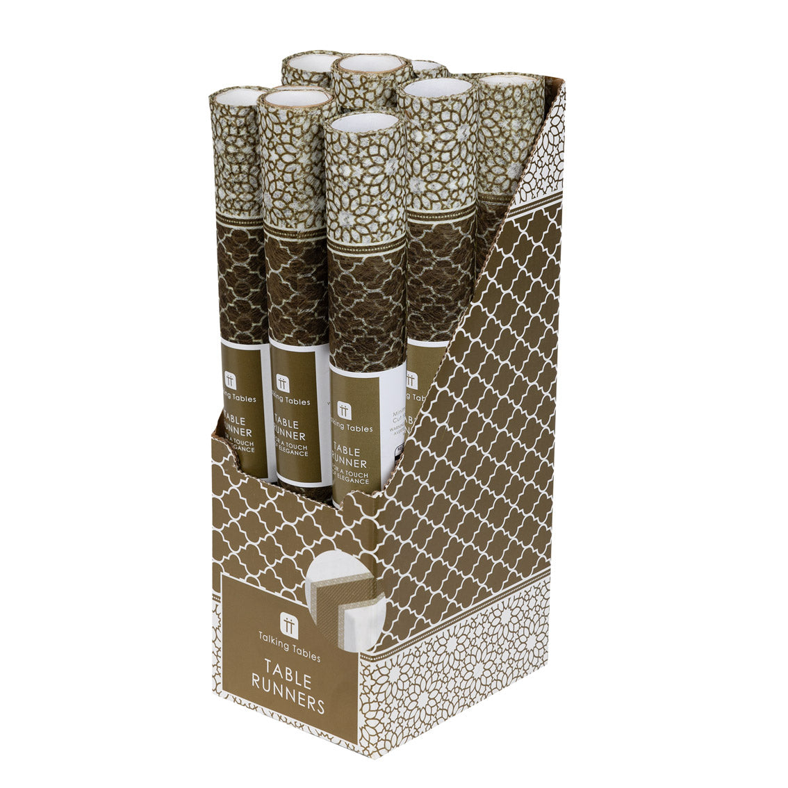 About these Party Porcelain Gold & White Fabric Table Runner - 2m: