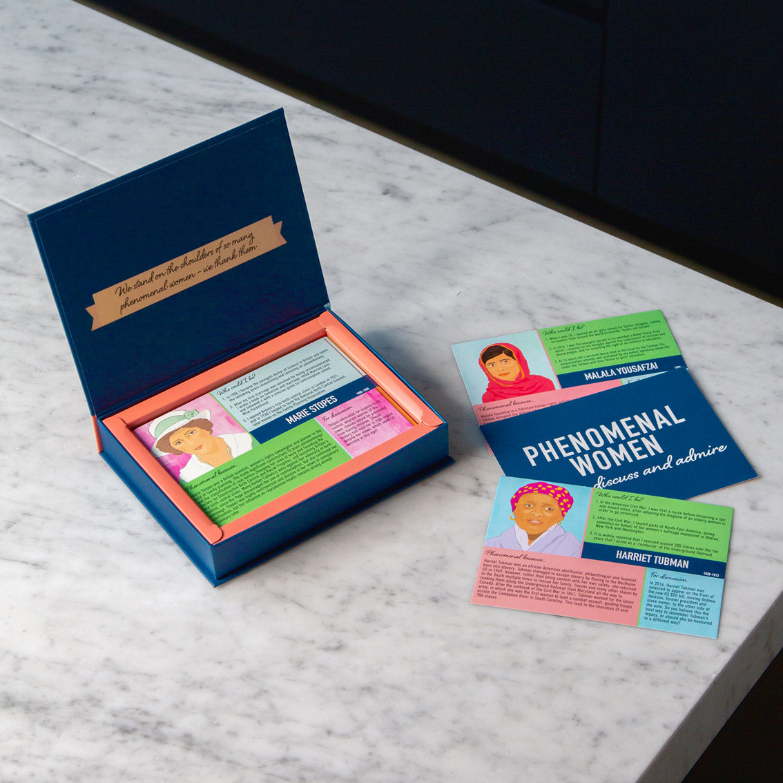 Phenomenal Women Discussion Game by Talking Tables. Get conversation flowing, spark friendly debate and open your eyes to fresh perspectives with this intellectually engaging and thought-provoking card set, which explores the lives of inspirational women who made their mark through history.