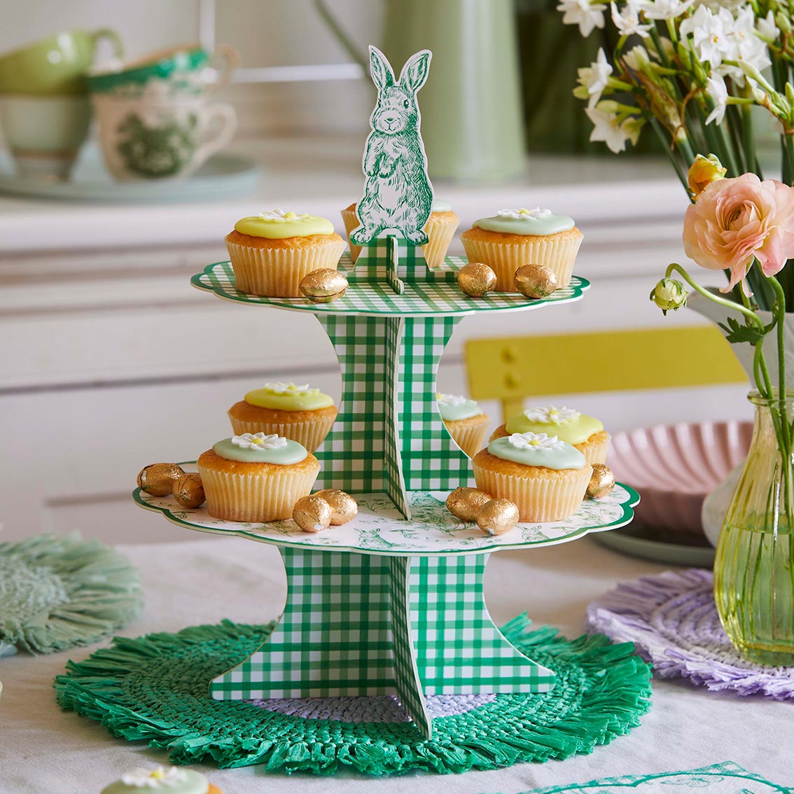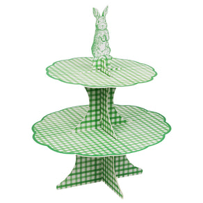 This exquisitely decorated scalloped cake stand will look like a mini work of art displayed in store. The double sided green and white design allows customer to choose from a whimsical Toile du Jouy print or gorgeous gingham, both topped with a loveable bunny rabbit. It will make quite the showstopper displaying sweet and savoury treats at tea parties and Easter soirees.