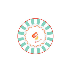 Seaside-inspired shrimp and lemon design with fresh striped detail