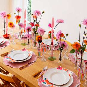 Breathe new contemporary energy into your shop with our Tall Green, Orange & Pink Glass Candle Holder. Standing at 19cm tall, this glass candle holder will make a statement on any party table setting and can be displayed all year round on a mantel piece or shelf.