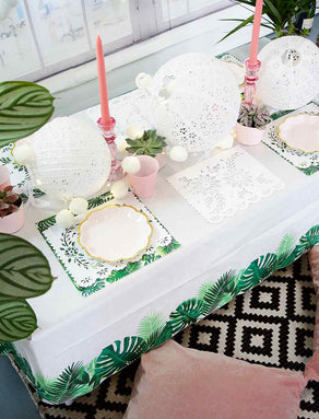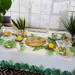 This beautifully crafted tropical table cover is ideal for summer parties, outdoor occasions, BBQ's, and many more! Both product and packaging are plastic free and can be recycled in your home recycling.