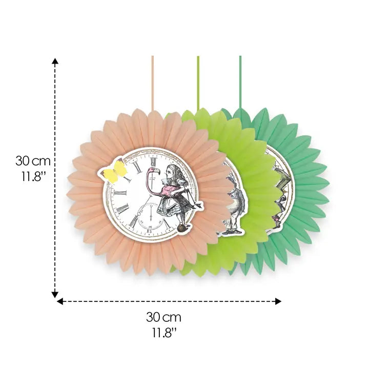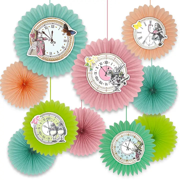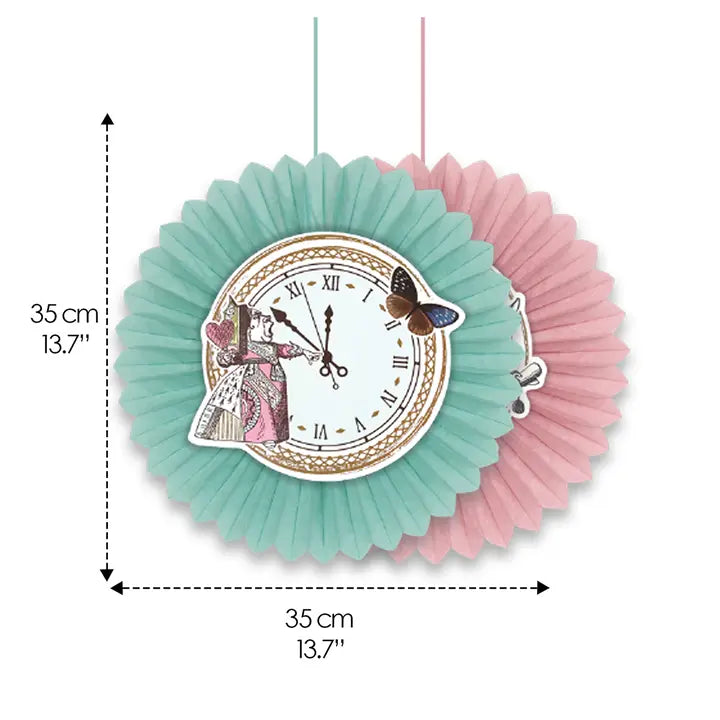 Our Truly Alice Clock Fans coordinate with our besting selling Alice collection and add a sense of fun to any tea party or birthday. The pack includes 10 fans; five with clocks that are easily attached -two of 35cm diameter and three of 30cm, and five plain ones of 25cm. Both product and packaging is made from paper from sustainably managed forests.