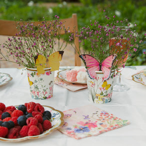 These cups look great with our Truly Fairy paper plates and napkins, to create a magical fairytale setting. Each pack contains 12 paper cups with butterflies in 2 different designs. This product now has plastic free packaging.