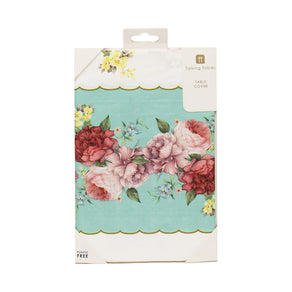 Give your customers the best recyclable table cover for their tea party with our turquoise and white one adorned with flowers. A sophisticated addition to our best-selling Truly Scrumptious range.