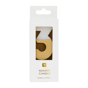 This number 3 gold candle is perfect for adding a stylish touch to any birthday cake. Ideal for a Wedding Anniversary or Milestone Birthday whether that be a 3rd, 13th or 30th. We have number candles from 0-9 so you can combine them to create any age or number.