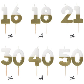 About this White & Gold Milestone Birthday Number Candle Starter Set