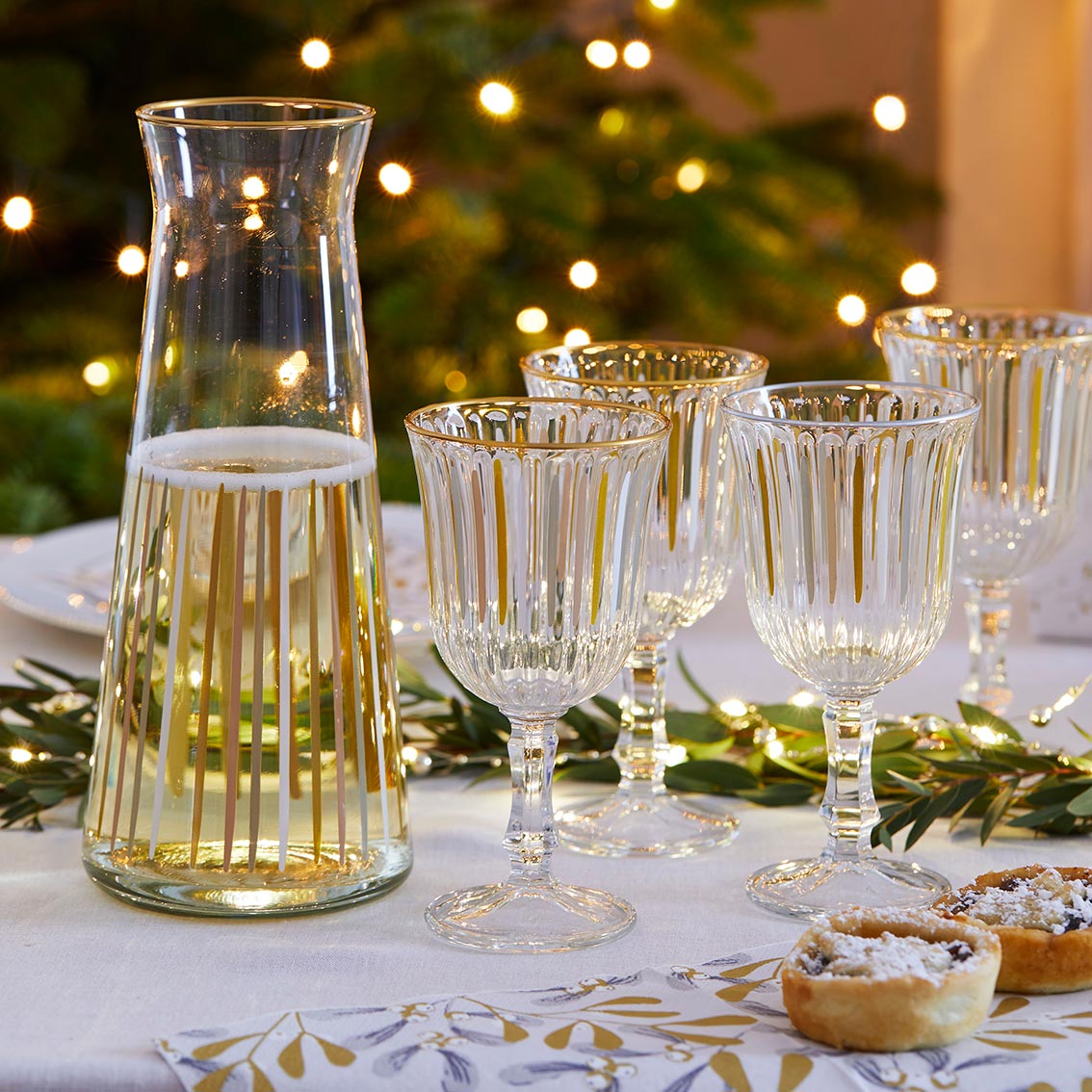 Bring some elegance and style to your customers' dining table this Christmas with this new glass carafe. It’s made in Europe, and the white & gold stripes add a perfect balance of colour and design, to sit beautifully on a festive table with gold table decorations